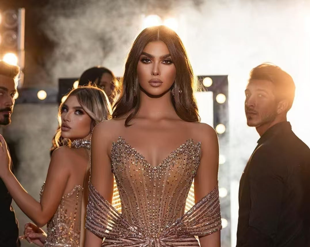 Nude Diamonds Evening Dress Straps Beaded Long Mermaid Formal Party Gown-008
