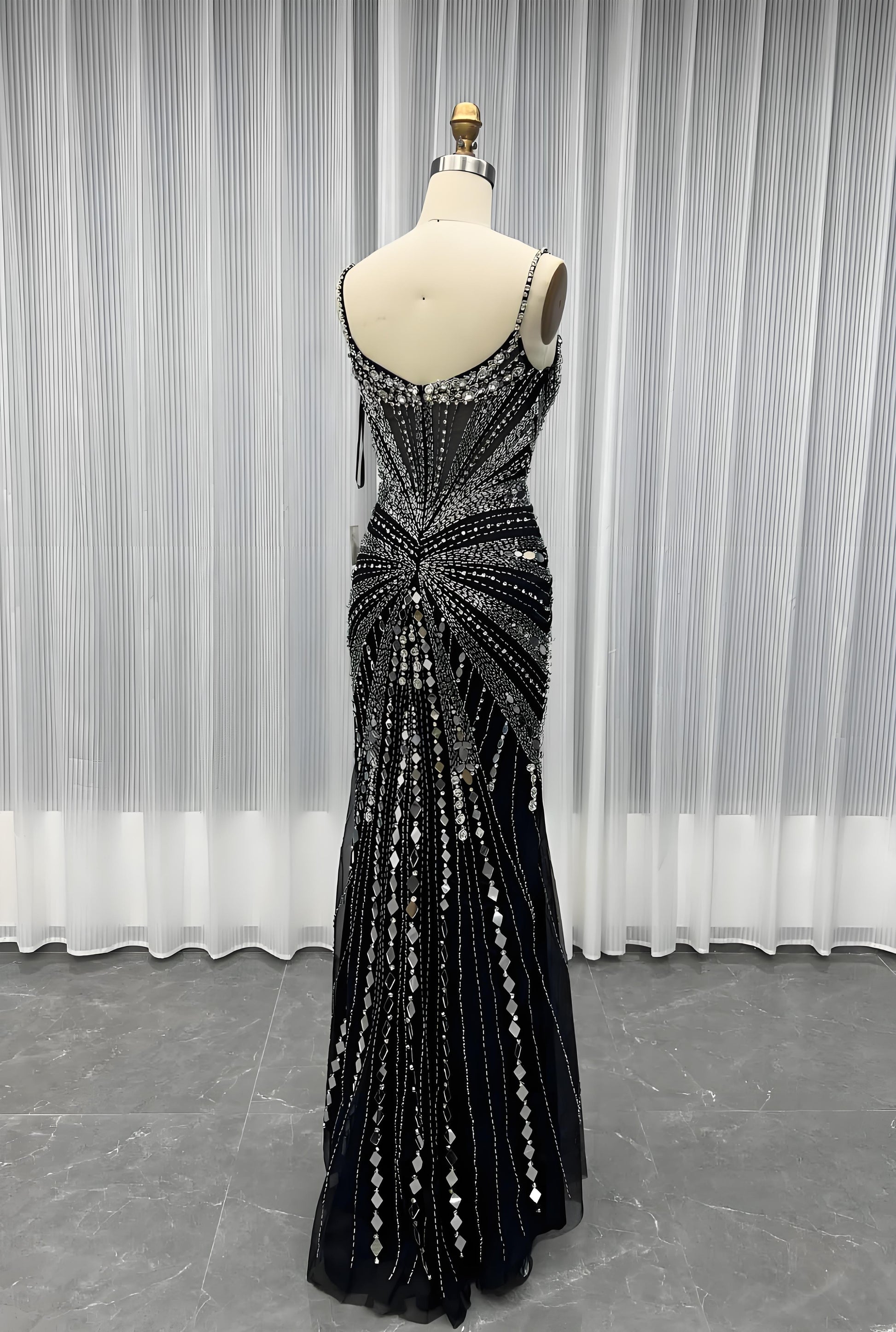 Crystals Pageant Evening Gown Long Slit Strapless Women Party Dress-009
