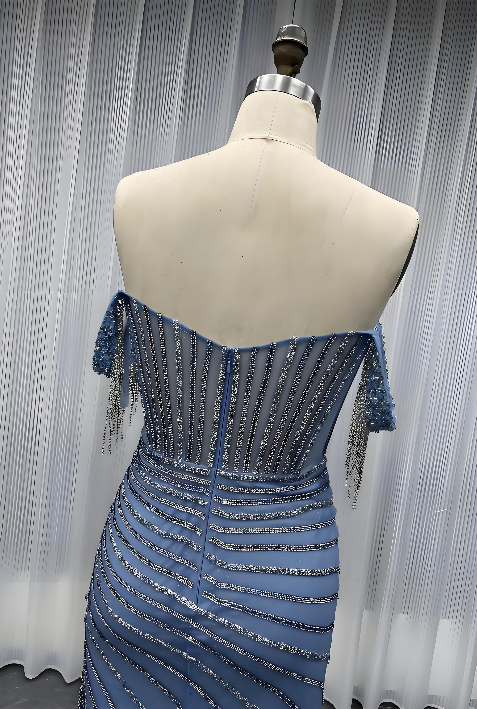 Luxury Off the Shoulder Crystals Prom Dresses Long Mermaid Evening Gown-018